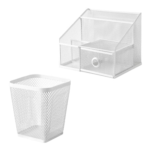 View full detailsIKEA DRÖNJÖNS Desk Management Set: Multi-Compartment Organiser & Mesh Pen Cup - White