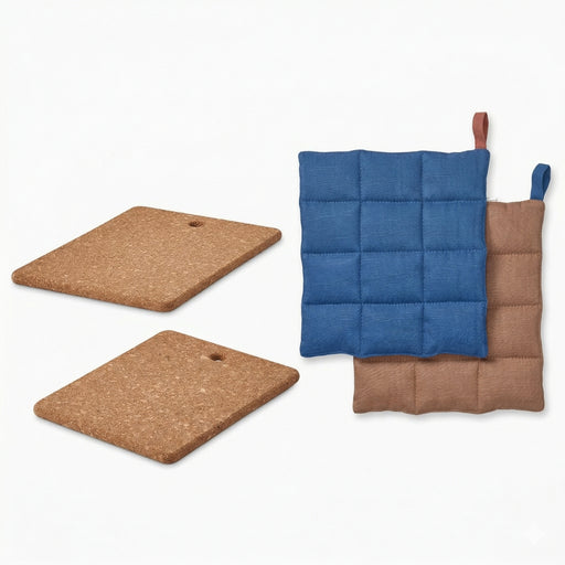 View full detailsIKEA Kitchen Heat Protection Set - SOLUPPGÅNG Padded Pot Holders (2-Pack, Blue/Brown) & HEAT Natural Cork Pot Stands (2-Pack)