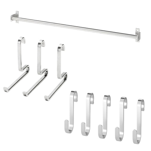 View full detailsIKEA KUNGSFORS Chef’s Storage Set: 56cm Stainless Steel Rail, 3 Hooks & 5 S-Hooks