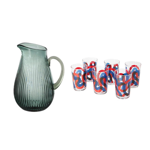 View full detailsIKEA VARDAGEN Jug, patterned/dark grey-green, 2 l with Glass Set, Patterned, 30 cl - Pack of 6