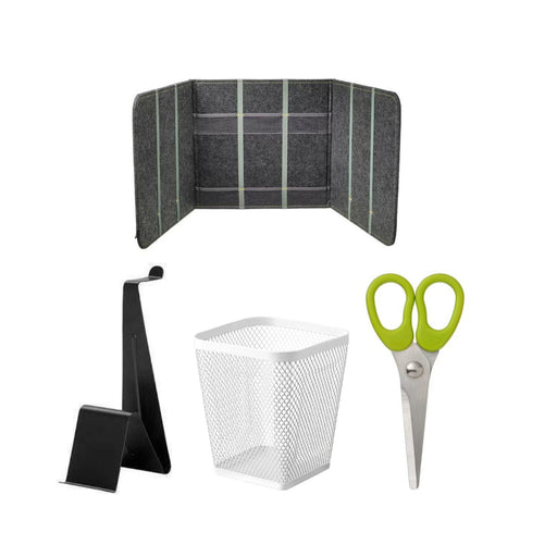 View full detailsIKEA Desk Organizer Set, Grey Felt Privacy Panel with Pockets, White Mesh Pen Holder, Scissors and headset stand ( Black )