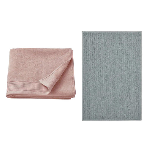 View full detailsIKEA VINARN Bath towel, light pink, 70x140 cm with FINTSEN Bath mat, grey, 40x60 cm