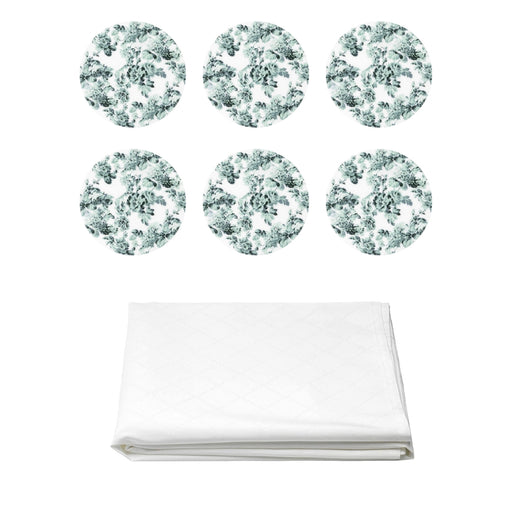View full detailsIKEA FULLKOMLIG Tablecloth, White,145x240 cm with IKEA SMAKSINNE Placemats, White/Green, Flower, 37 cm (15") (pack of 6)