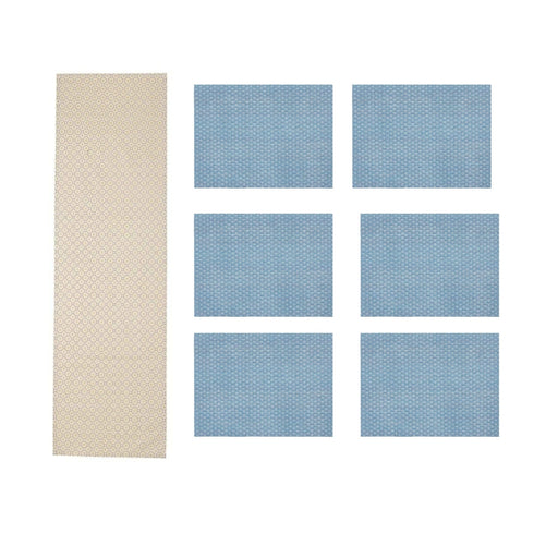 IKEA LJUVARE Table-Runner( 1 unit ), Beige, 40x140 cm (16x55) with GALLRA Place mat, Blue/Patterned , 45x33 cm ( 6 pack )