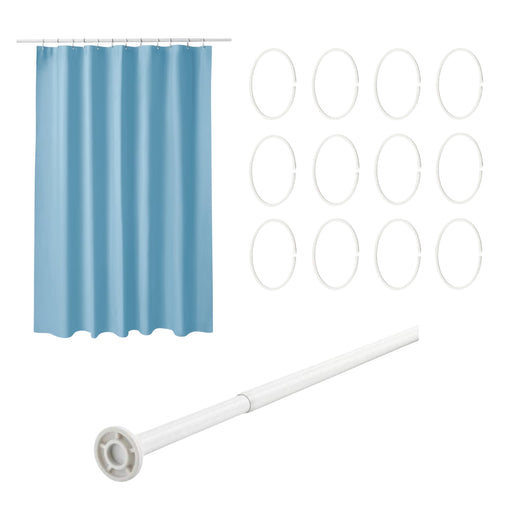 Complete Blue Shower Set: Curtain, Rod & Rings Bundle Everything you need for a fresh, functional bathroom. No-drill installati...