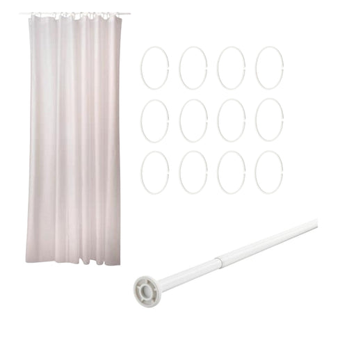 IKEA Complete Shower Rod & Ring Bundle Adjustable White Shower Rod with 12 Curtain Rings • No-Drill Installation Solution ...