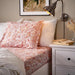 "I absolutely adore this pink and white sheet set! The pattern is so pretty and fresh-looking. The fitted sheet fits our double bed perfectly and stays in place all night. The flat sheet is generously sized for proper tucking. Washes beautifully and the colors stay vibrant. It completely brightened up our bedroom!"
