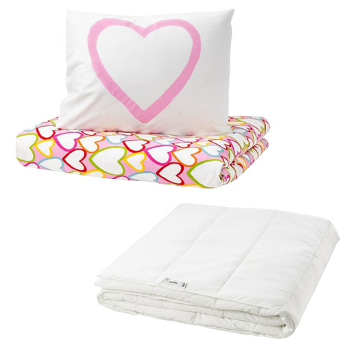 Complete Single Bed Set IKEA Heart Pattern Bedding Bundle VITAMINER HJÄRTA Duvet Cover & SÄFFEROT Light Warm Duvet 🛏️ Single Size 150x20...