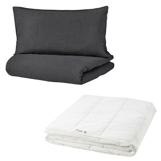 Complete Queen Bedding Set IKEA Dark Grey Bedding Bundle VÄSTKUSTROS Duvet Cover & SÄFFEROT Light Warm Duvet 🛏️ Queen Size 240x220 cm ...
