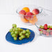 Set of two: Includes two glass bowls with secure blue lids