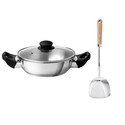 View full detailsIKEA GULDSPARID Kadai wok with lid, 26 cm with VARDAGEN Wok spatula, stainless steel/beech, 36 cm