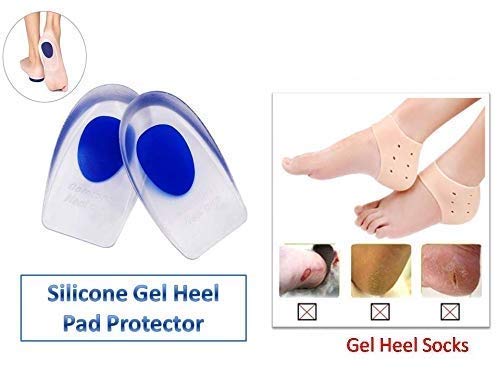 Digital Shoppy Silicone Gel Heel Protector Insole Cups with Heel Socks For Men And Women (1 pair silicon heel blue pads + 1 pair silicon heel socks)--FREE SHIPPING