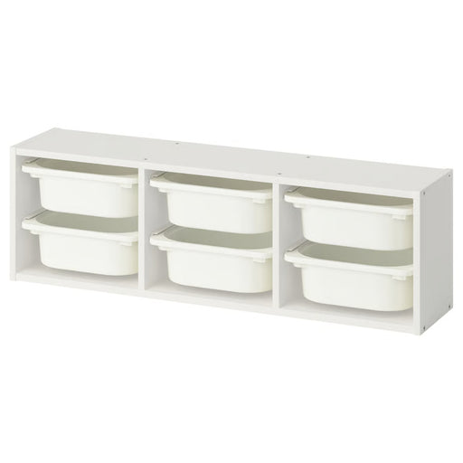 View full detailsIKEA TROFAST Wall storage, white/white, 99x21x30 cm (39x8 1/4x11 3/4 ") with 6 x Storage box, white, 20x30x10 cm (7 ¾x11 ¾x4 ")