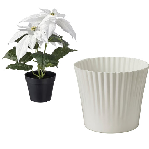 IKEA VINTERFINT Plant pot, white, 12 cm with VINTERFINT Artificial potted plant, in/outdoor Poinsettia/white, 12 cm