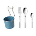 IKEA HULTARP Container, blue/nickel-plated, 14x16 cm (5 1/2x6 1/4 ") with cutlery set 18 pcs stainless steel