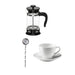 The included white cup and saucer (20 cl) add a clean, classic serving touch, while the stainless steel measuring scoop ensures you always use the right amount of coffee or tea for consistent taste. Whether you're preparing a quick cup at home, serving guests, or gifting a practical coffee set, this combo delivers convenience, durability, and modern Scandinavian design.