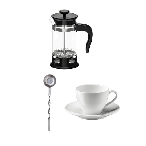 View full detailsIKEA UPPHETTA Coffee/tea maker, glass/stainless steel, 0.4 l, and cup and saucer, white 20 cl with measuring scoop, stainless steel