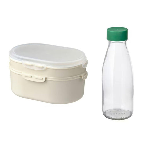 View full detailsIKEA UTBJUDA Stackable lunch box for dry food, light grey-beige with Water bottle, clear glass/green, 0.5 l