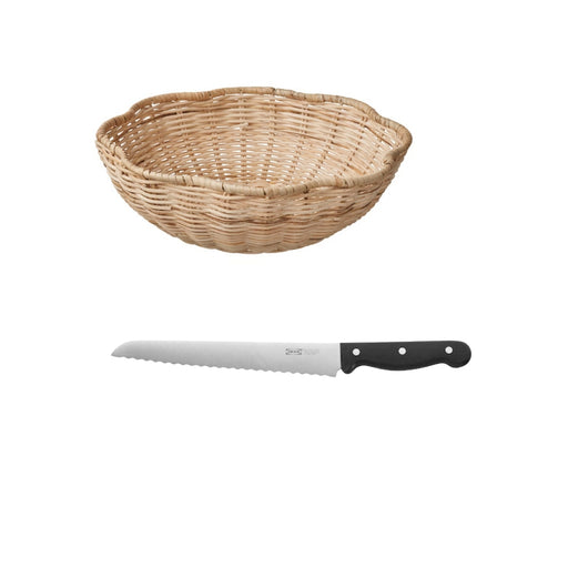 View full detailsIKEA SMÖRFISK Bread basket, rattan, 27x8 cm (11x3 ") with VARDAGEN Bread knife, dark grey, 23 cm