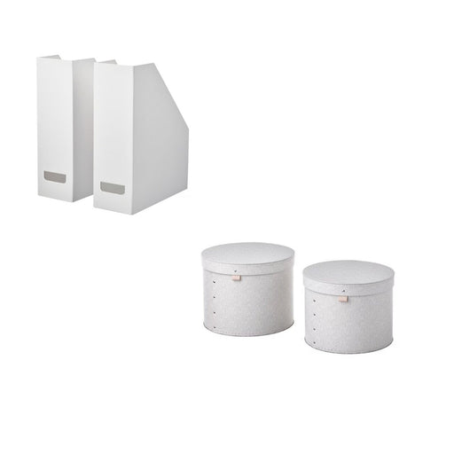 View full detailsIKEA FJÄDERHARV Magazine file, white with Storage box with lid, set of 2, beige