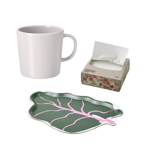 View full detailsIKEA BASTUA Tray, leaf shaped green, 36x49 cm with Mug, beige30 cl & 100 pack of napkin set