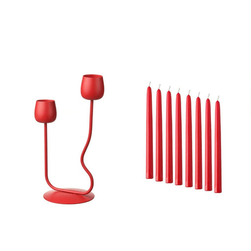 IKEA Candlestick/tealight holder, bright red, 29 cm with Unscented candle, red, 25 cm