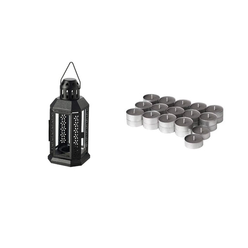 View full detailsIKEA ENRUM Lantern for Tealight, in/Outdoor, Black, 22 cm (8 ¾") with tealight candle 30 pack.