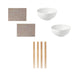 Package(s):1x Ikea Dining Set with 2 White Bowls, 4 Pair Wooden Chopsticks, 2 Placemats, Asian Style Tableware