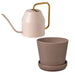 Create a stunning boho-chic plant display with this intentionally contrasting set. The delicate pale pink watering can with gold accents beautifully complements the rich, earthy brown plant pot—resulting in a warm, inviting aesthetic that feels both feminine and grounded.