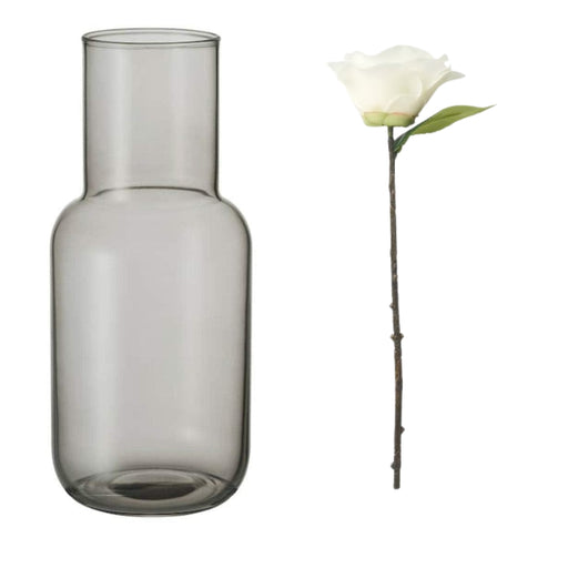 View full detailsIkea FÖRENLIG Vase, light grey21 cm (8 ¼ ") with SMYCKA Artificial flower, in/outdoor/Camellia white, 28 cm