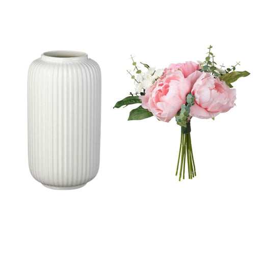 View full detailsIKEA STILREN Vase, white22 cmVase, white22 cm with SMYCKA Artificial bouquet, pink, 25 cm