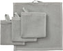 - PRACTICAL FEATURES: Comes in a pack of 4 washcloths in elegant grey colour, featuring a woven border pattern and convenient hanging loop for storage